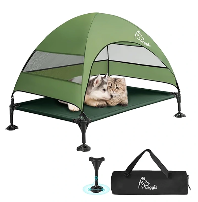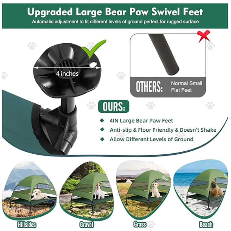 سرير كلب للقطط مع مظلة، سرير كلب مرتفع مطور مع مظلة، سرير كلب مرتفع قابل للحمل في الهواء الطلق مع أقدام ثابتة مضادة للانزلاق، سرير حيوانات أليفة ذو ظل أوسع، سرير كلب مرتفع للكلاب الكبيرة للتخييم، للاستخدام الداخلي والخارجي.