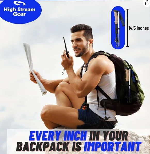 تنهار أعمدة المشي لمسافات طويلة للركيط إلى 37 سم (14.5 بوصة) وتزن 10 أوقية فقط لكل منها تاركًا لك مكانًا أساسيًا لمعداتك الشخصية.
