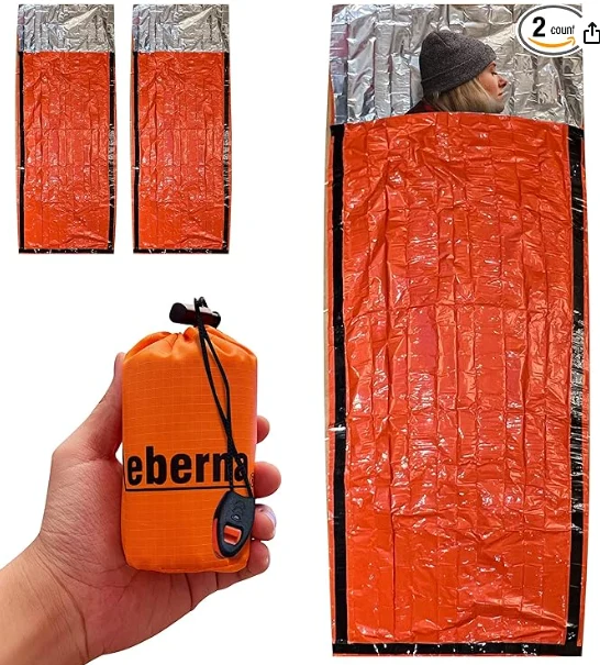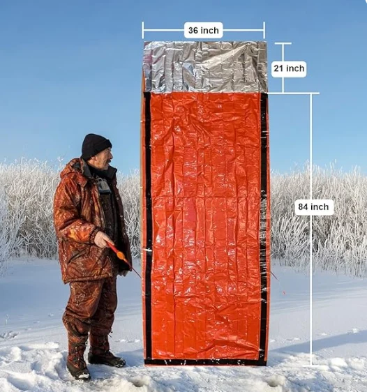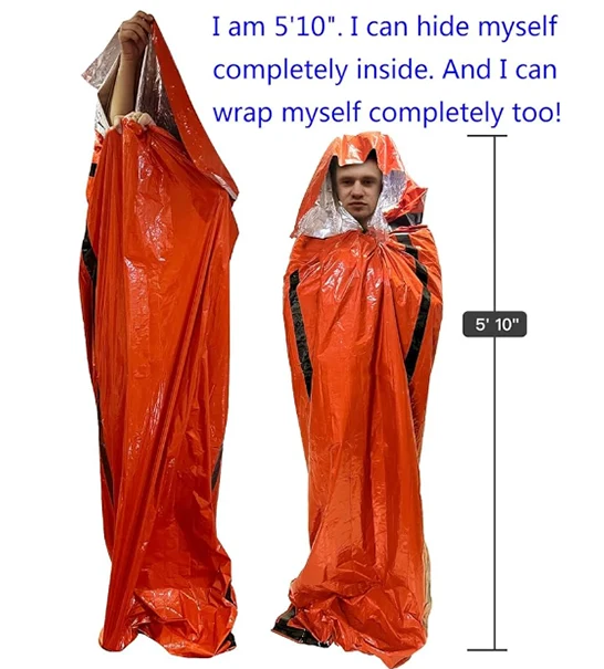 يمكن أن تزيد كيس النوم على قيد الحياة في حالات الطوارئ من فرص البقاء على قيد الحياة في جميع الطقس وجميع المواسم وجميع الظروف. إنه مصنوع من مواد مايلار متينة مصممة من قبل ناسا لاستكشاف الفضاء. يحتفظ / يعكس مرة أخرى 90 ٪ من حرارة الجسم. إنه قابل لإعادة الاستخدام ، مقاوم للماء ومقاوم للرياح.
