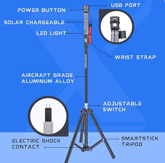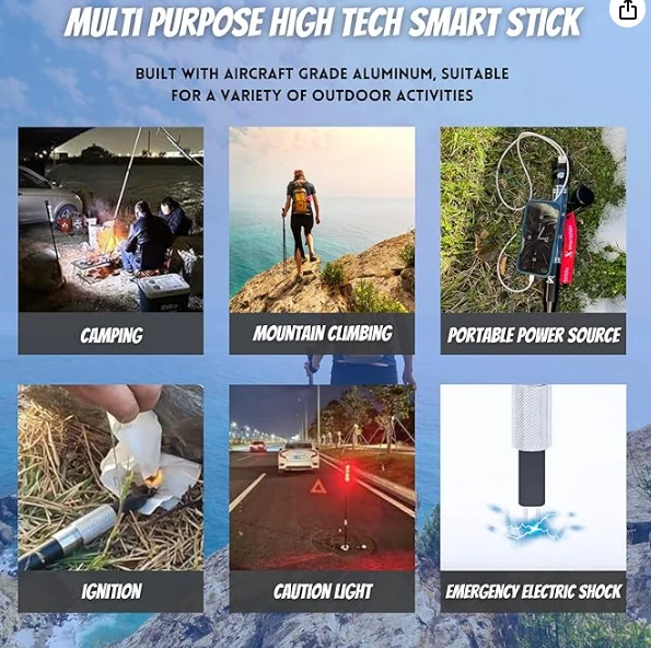 يمكن لعصا المشي لمسافات طويلة التكتيكية تشغيل هاتفك الذكي بسهولة أو أي جهاز USB آخر باستخدام منفذ USB المناسب. لا تقلق أبدًا بشأن حمل بنك كهربائي عندما يكون لديك عصا المشي لمسافات طويلة على قيد الحياة.