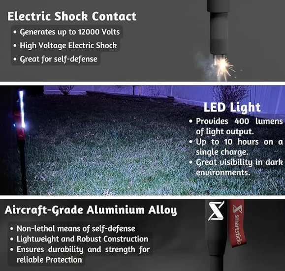 وضعان متاحان على LED: ضوء أبيض مشرق مثالي للتخييم وفلاش أحمر/أزرق لحالات الطوارئ ، مما يجعله أداة فعالة للدفاع عن العصي الليلية.