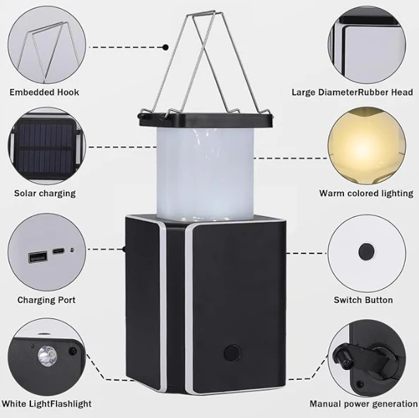 LED LED Solar Camping Light ، Mediating Camping Lights Mights Might-Crank Jension. إذا لم يكن لديك شاحن حوله وليس هناك شمس ، فإن هذا المولد المرفق يدويًا مثالي لشحن الضوء.