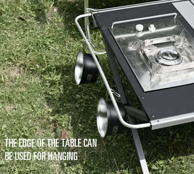 خفيفة الوزن متعدد الوظائف طي الجدول IGT ، وفقا لاحتياجاتك. مثالي للتخييم ، والشواء ، والطبخ في الهواء الطلق ، وأكثر من ذلك. يمكن استخدام جانب الجدول لتعليق الأطباق والأدوات