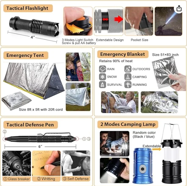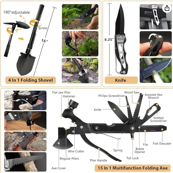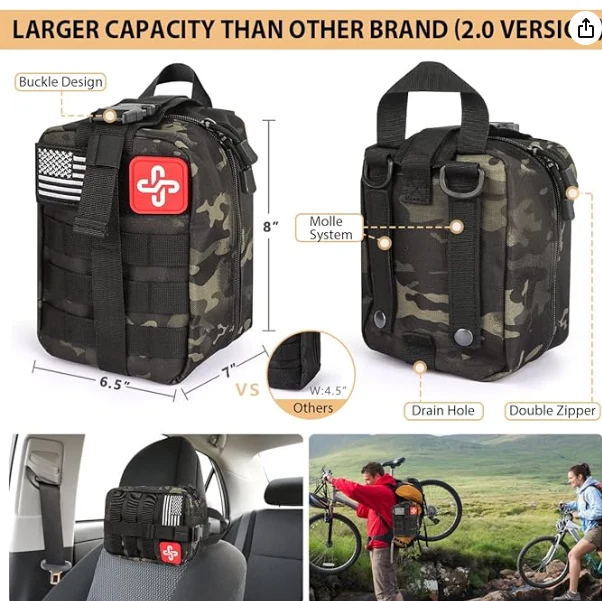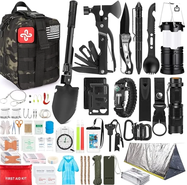 تتضمن حقيبة الإسعافات الأولية في الهواء الطلق إجمالي 250 ٪ أدوات البقاء متعددة الأغراض. أنه يحتوي على معدات وأدوات البقاء الأكثر شعبية ، وأيضًا مجموعة الإسعافات الأولية التي تكفي لعلاج الأسرة أو مجموعة من الأصدقاء في ظل ظروف الطوارئ.