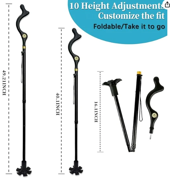 معدات التسلق في الهواء الطلق ، عمود المشي لمسافات طويلة ، قصب المشي قابلة للطي للرجال والنساء كبار السن لتحقيق التوازن ، قصب قابل للطي ، والارتفاع القابل للتعديل مضاد للانزلاق ، عصا المشي قابلة للانهيار للمساعدات التنقلية في السفر