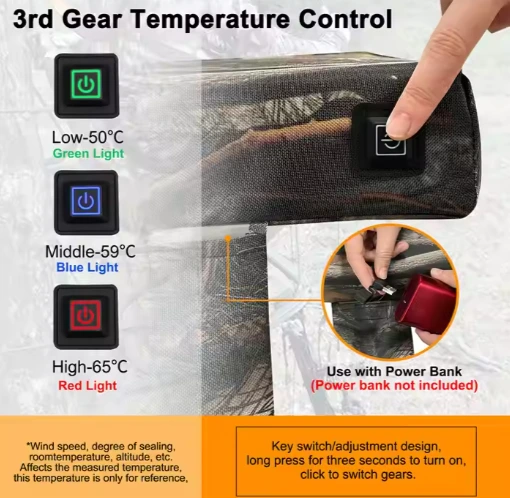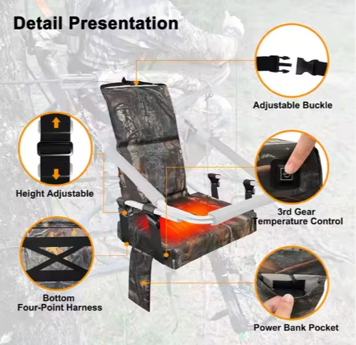 كرسي مسخن للصيد في الهواء الطلق ، يوفر كل من القوة والراحة ، ومصمم لتحمل الظروف الخارجية الوعرة مع توفير دعم قوي للجلوس ، وضمان الصيد المريح لساعات