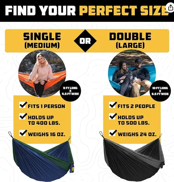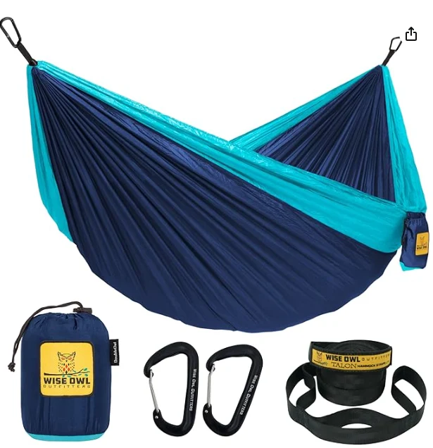محمولة 3 في 1 أرجوحة التخييم. الأرجوحة الخفيفة الوزن تأتي في مجموعة متنوعة من مجموعات الألوان المختلفة لتنسيق معداتك بالإضافة إلى أحجام لتناسب احتياجاتك. البومة الفردية تتسع بشكل مريح شخص واحد ، ويمكن أن تمسك ما يصل إلى 400 رطل. يمكن أن تصل البومة المزدوجة إلى 500 رطل ، وهي مثالية لشخصين. عندما تنفجر ، تتضاعف الحقيبة كجيب لهاتفك أو الشراب أو عناصر أخرى. ليس أكبر من الباذنجان عندما يكون مضغوطًا ، هذه الأرجوحة مثالية للتغلب على المغامرات في الهواء الطلق.