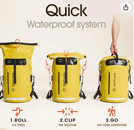 حقيبة القماش الخشن الجافة المقاومة للماء ، مقاومة للماء بنسبة 100 ٪ لضمان بقاء الترس جافًا تمامًا أثناء السفر والتجديف وركوب الدراجات والتخفيف وصيد الأسماك