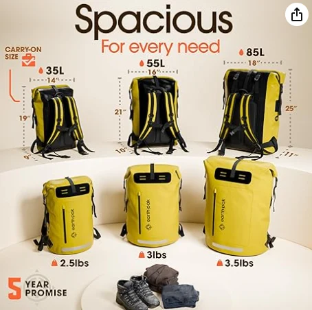 حقيبة القماش الخشن على الظهر الجاف المقاومة للماء. مجهزة بجيوب على كل من داخل وخارج الحقيبة. سستة كبيرة مقاومة للبلاش من الخارج للاستيلاء السريع والانتقال ، وجيب مضمن ، مقصورة شبكية ، وحلقة رئيسية في الداخل. توفر كل من الحلقات D المريحة المريحة لكل من أحزمة الكتف وحلقات نظام Molle نقاط مرساة للالتزام أثناء ركوب القوارب أو ركوب الدراجات.
